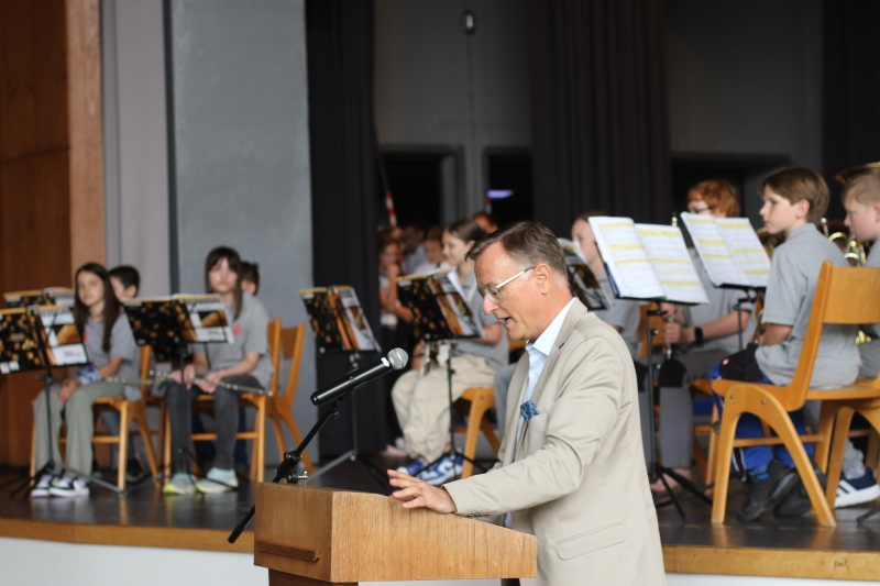 IMG 1181Der erste Schultag ist sicher für niemanden so aufregend wie für unsere neuen Fünftklässler! Zur Begrüßung zeigte die Turn-AG "Flying Dragons" eindrucksvolle Tanz- und Akrobatik-Einlagen und auch die Bläserklasse zeigte ihr Können. Nach einer kurzen Begrüßung von Dr. Diehr wurden "die Neuen" von ihren Klassenlehrerinnen in Empfang genommen, während die Mütter der Ökoteria IMG 1193den wartenden Eltern eine Kostprobe ihres Angebots gaben und dabei hoffentlich das eine oder andere Elternteil zum Mitmachen motivieren konnten.